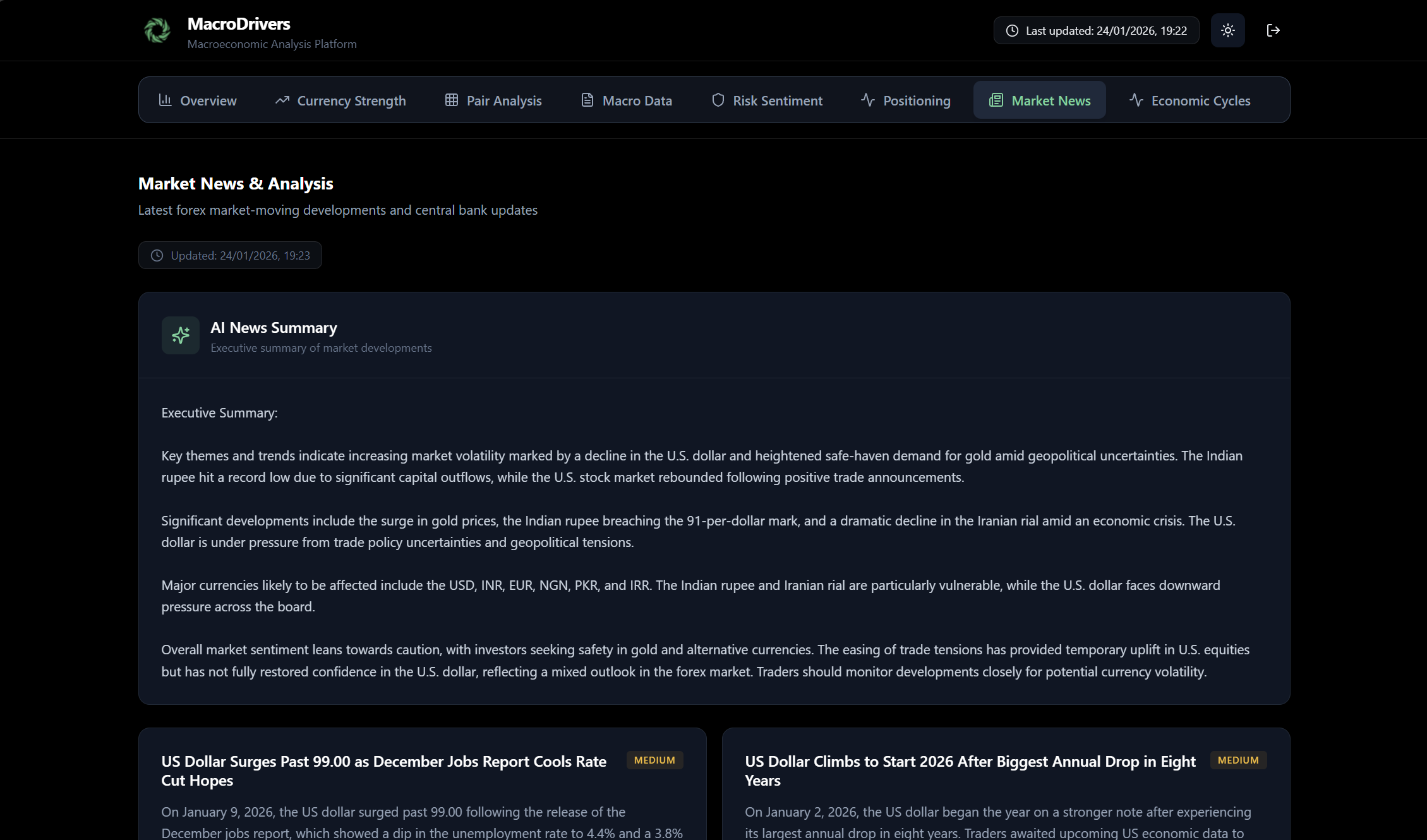 MacroDrivers Dashboard User Guide: News Tab